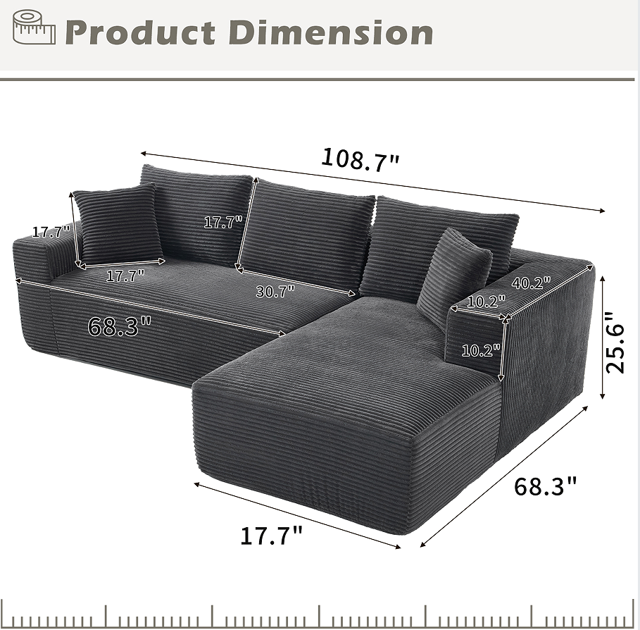 Ensemble de canapés modernes en L convertible - Canapé léger et confortable à compression sans vide pour salon et usage hôtelier