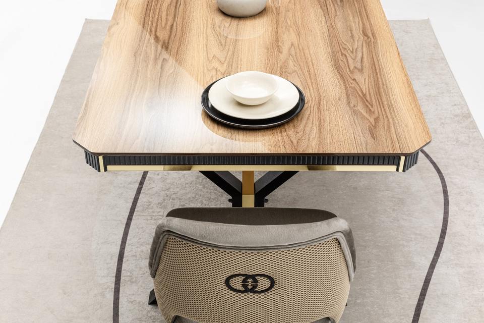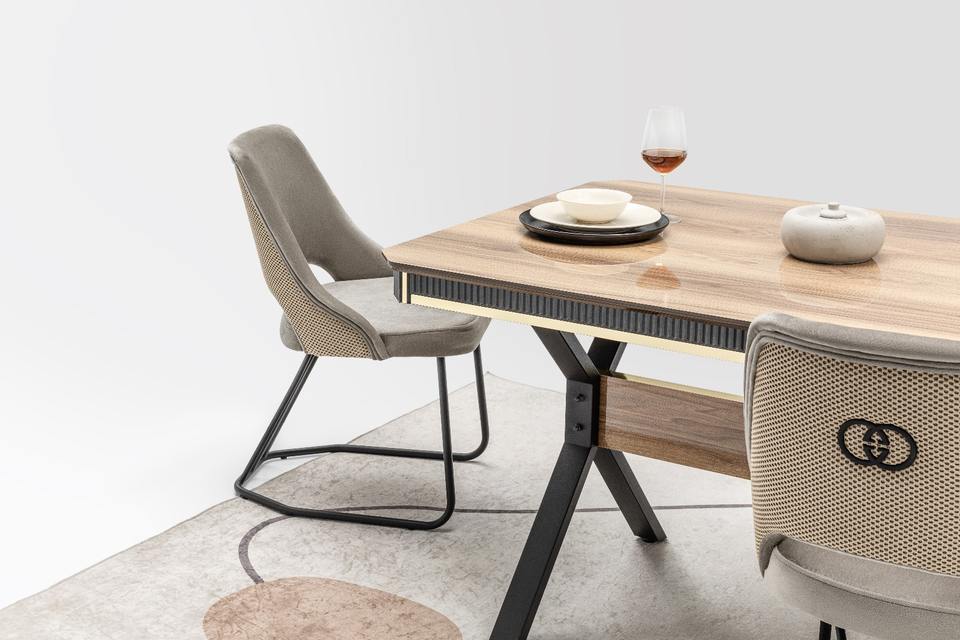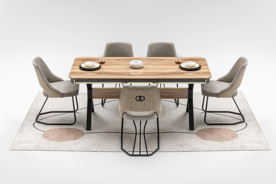 Ensemble de salle à manger moderne convertible en acier inoxydable 1 table 6 chaises pour appartement hôtel villa