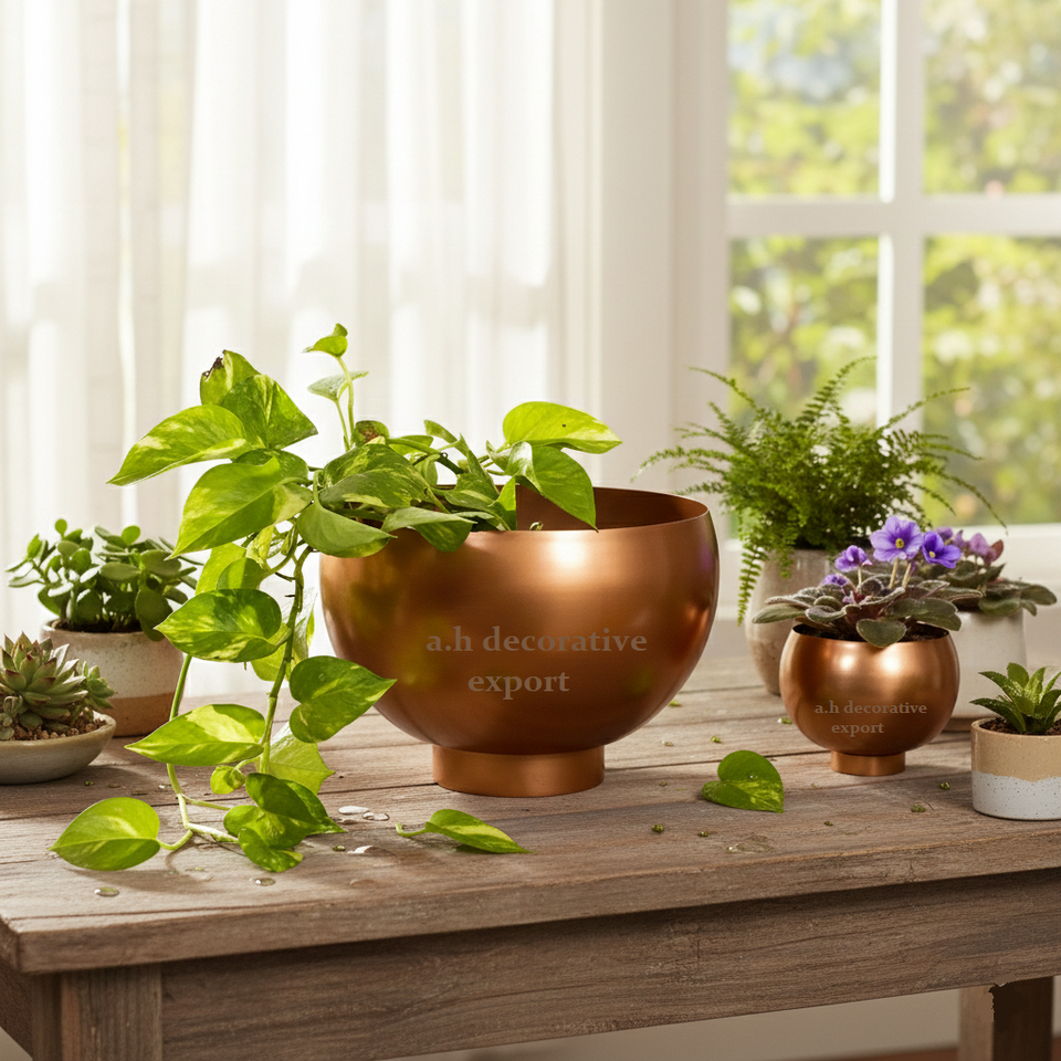 Ensemble de jardinières modernes en métal rond finition cuivre, pot de fleurs de luxe en fer pour décoration intérieure, bol décoratif, vases de table