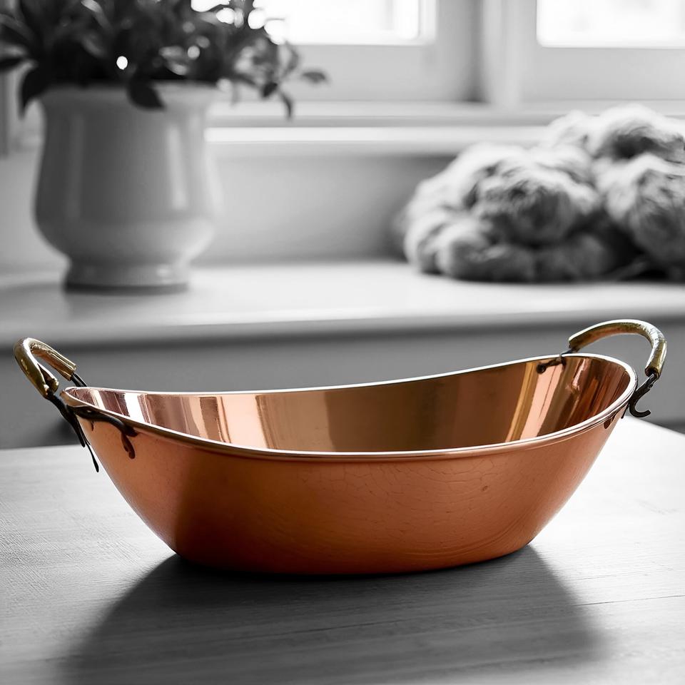 Bol de service en cuivre moderne Poignée ovale Design rectangulaire pour la maison Hôtel Restaurant. Comprend Chargeur pour les plats de fruits 100pcs