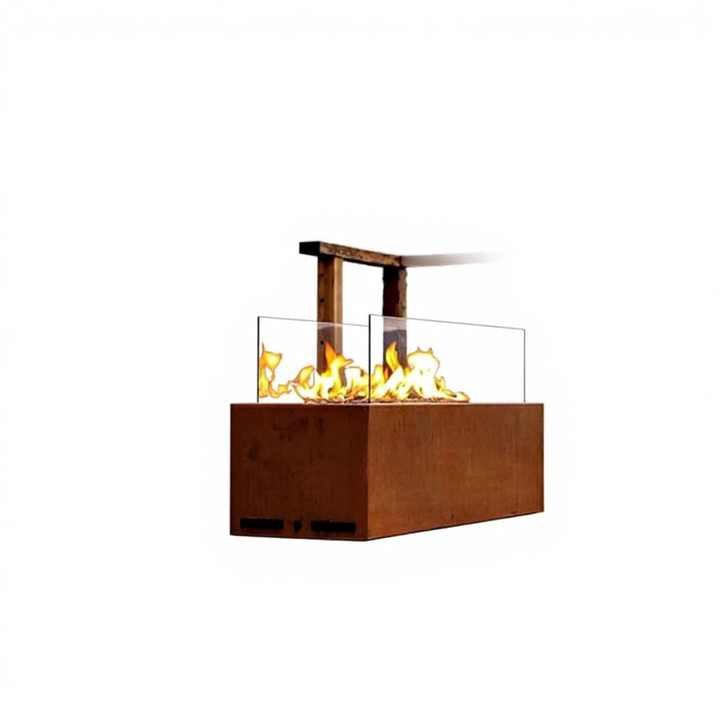 Brasero extérieur moderne en acier Corten à gaz propane avec conception à faible entretien pour jardin et terrasse
