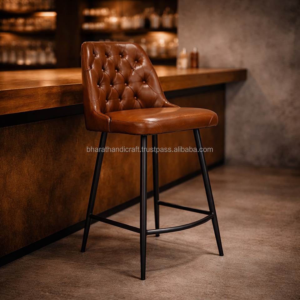 Chaise de comptoir moderne avec hauteur réglable et structure métallique robuste, dotée d'un siège rembourré confortable pour îlot de cuisine