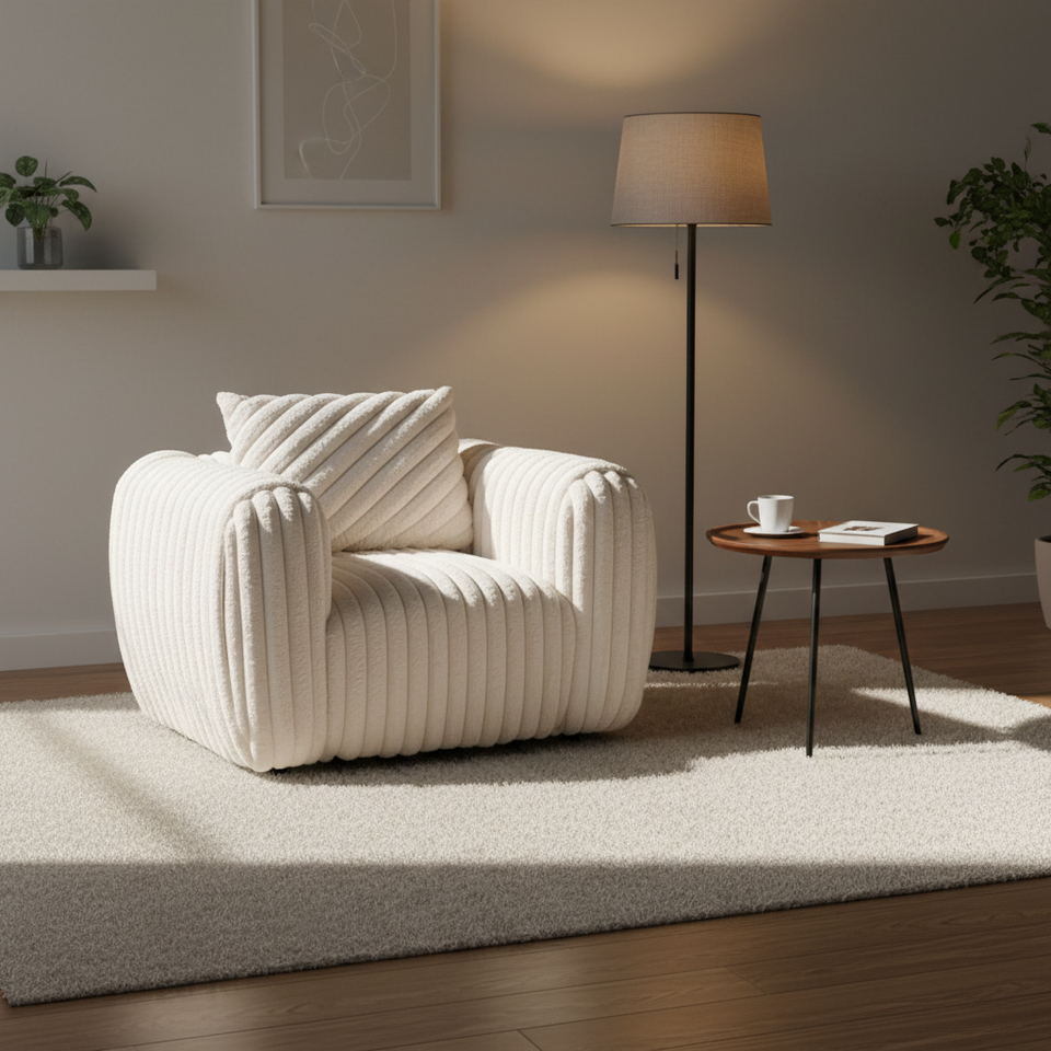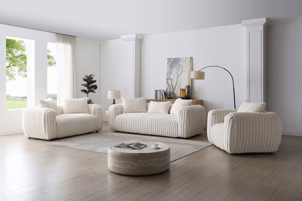 Ensemble de canapés modernes en velours côtelé crème | Ensemble de meubles de salon 3 pièces avec canapé deux places et fauteuil