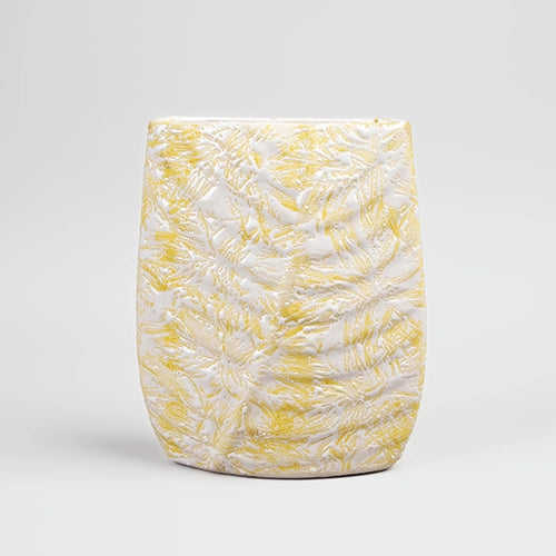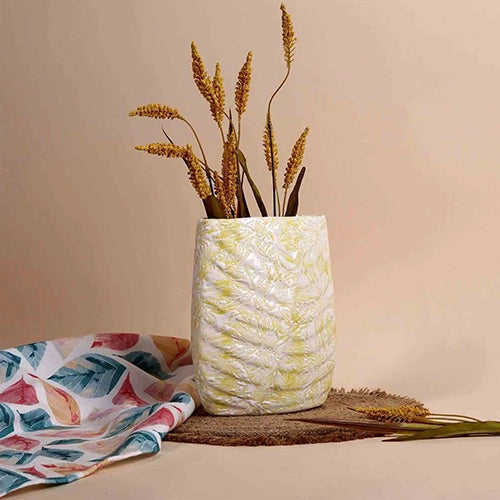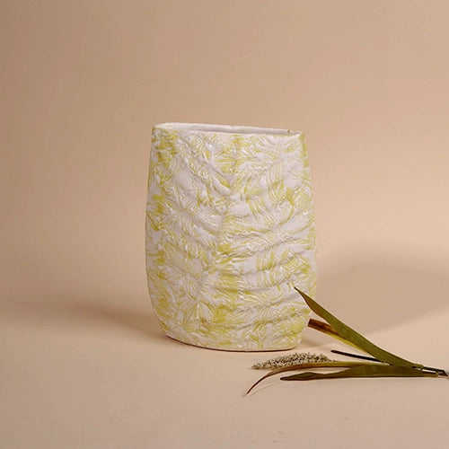 Vase en céramique moderne fait main, polyvalent, à motif de feuilles texturées orange/bleu/jaune, 14x18cm