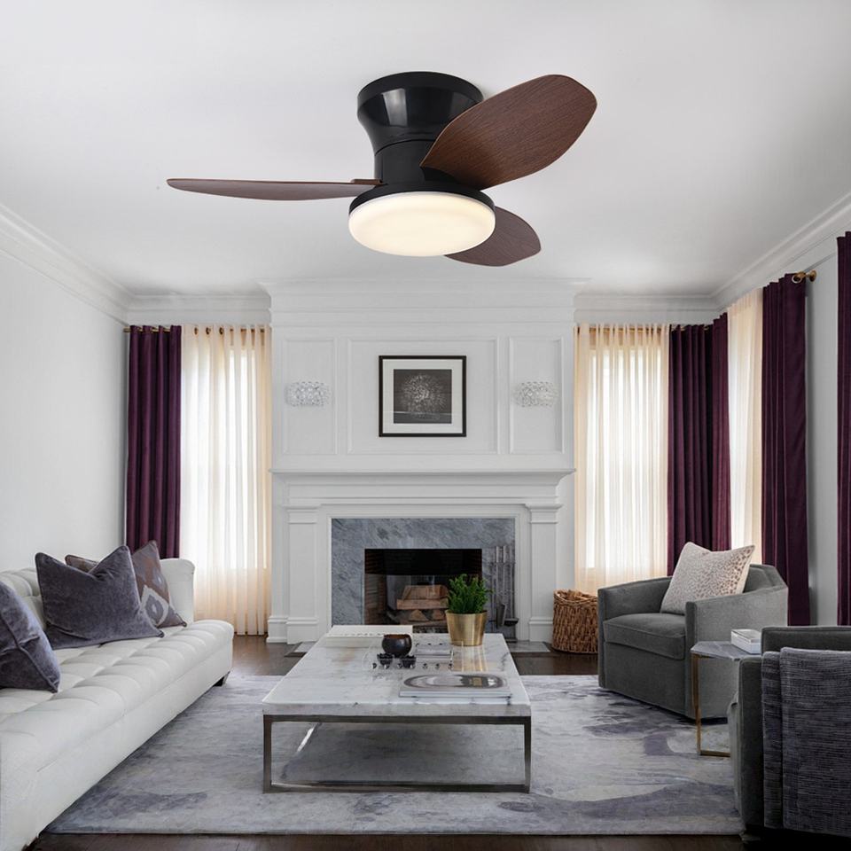 Ventilateur de plafond moderne à LED avec télécommande, moteur DC transfrontalier, silencieux, intelligent, avec insertion de feuilles, pour chambre à coucher, salon