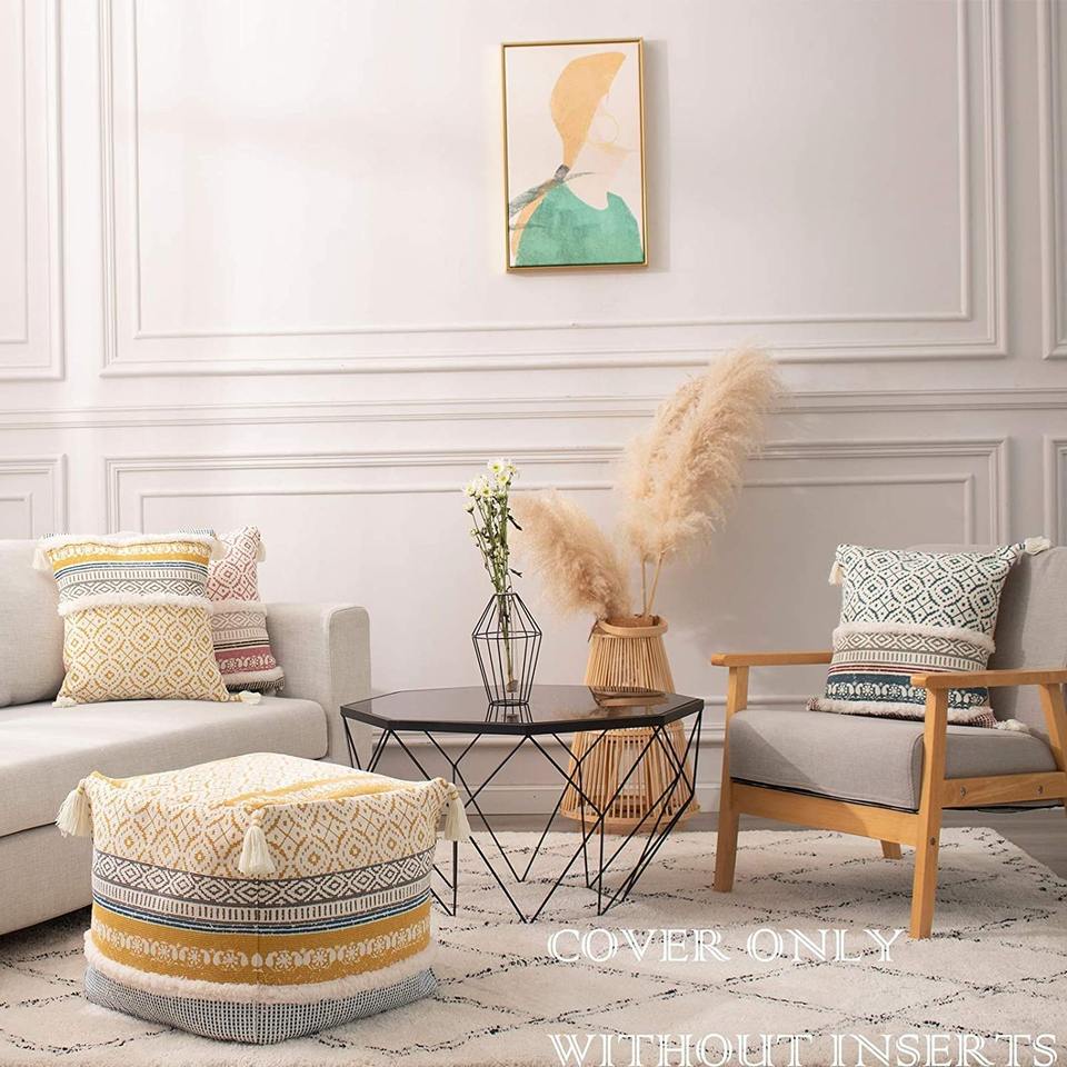 Tabouret Cube Moderne Touffeté Décoratif Pouf Non Rembourré Ferme Casual Pouf Pouf Couverture Grands Glands Tissé à la Main École Appartement