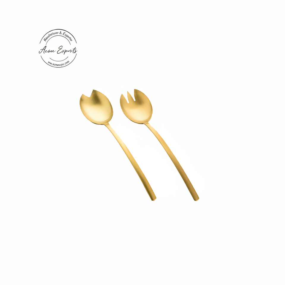 Ensemble de cuillères à salade dorées à manche incurvé moderne, durables, luxueuses, écologiques, compatibles lave-vaisselle, couverts en métal pour la cuisine et la salle à manger