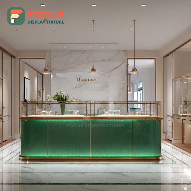 Fabricant de systèmes de présentation de bijoux modernes et personnalisés, surface polie, armoire à bijoux pour magasin commercial