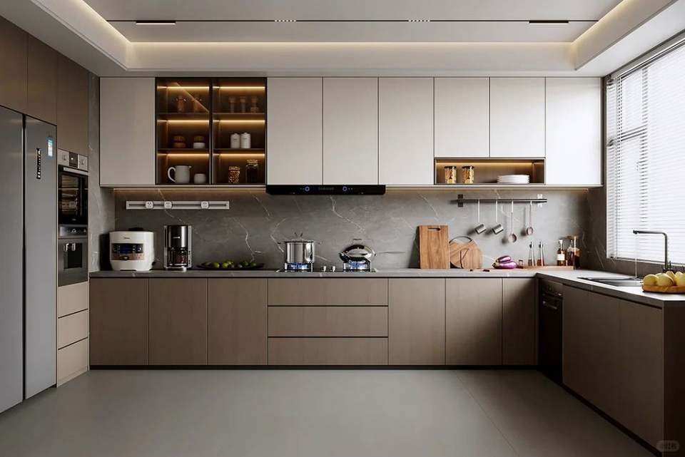 Fabrication de cuisines modernes sur mesure, armoires de cuisine commerciales avec accessoires de charnières pour évier, conception de cuisine équipée