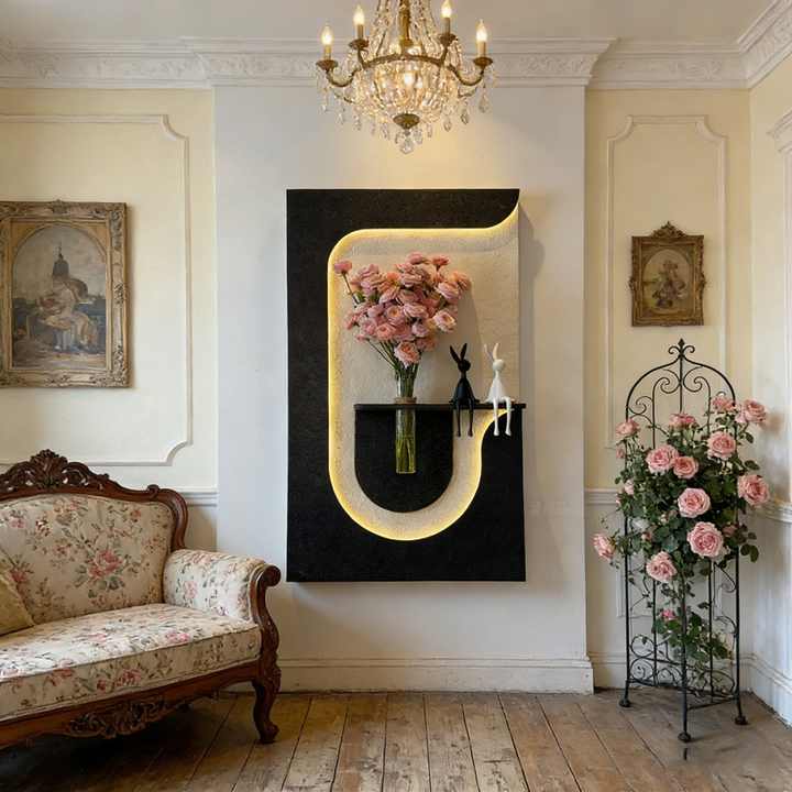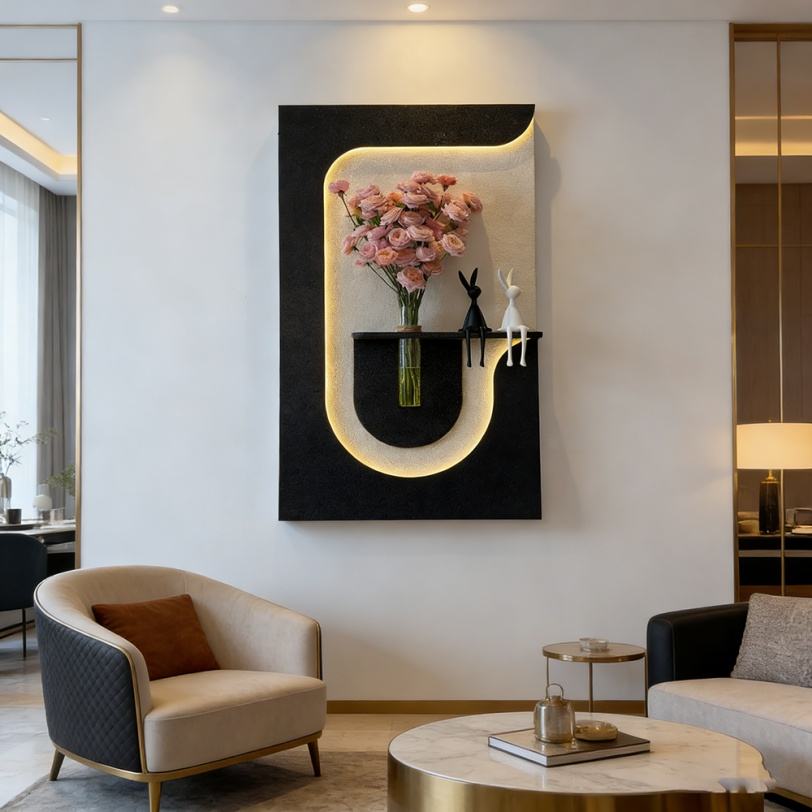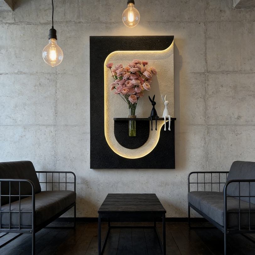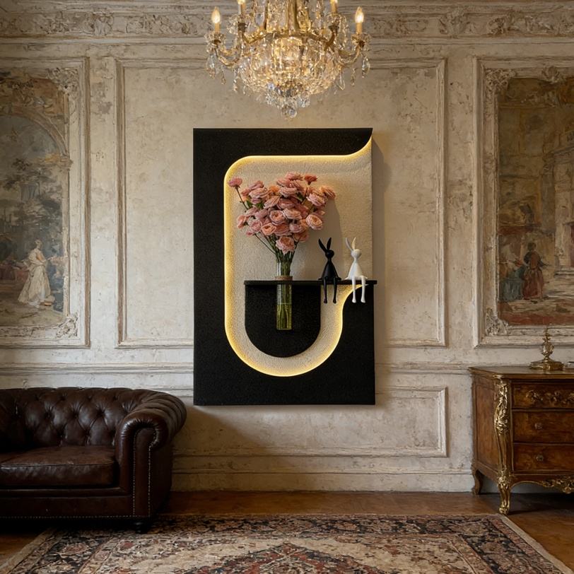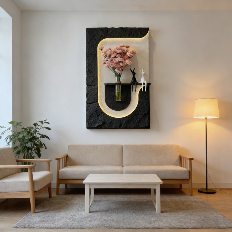 Modern Custom Modern Large Wall Art 3D Relief Textured Painting Geometric Sculpture Handmade Sandstone Painting Hotel Decor LED