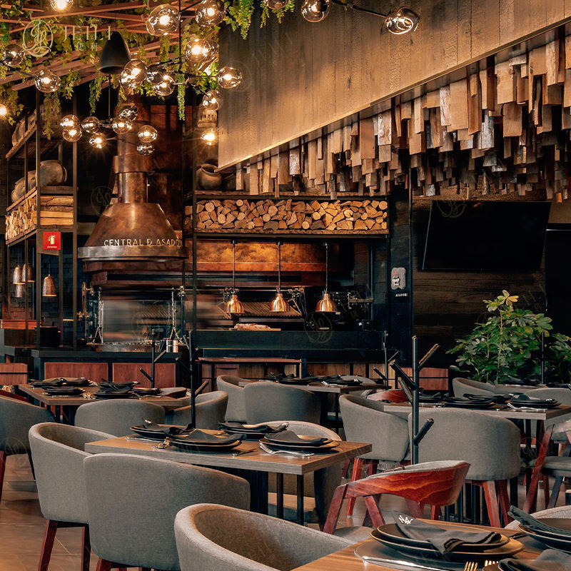 Table et chaises de café carrées modernes personnalisées Ensemble de meubles de sièges de stand de restaurant commercial pour le projet de guichet unique de café