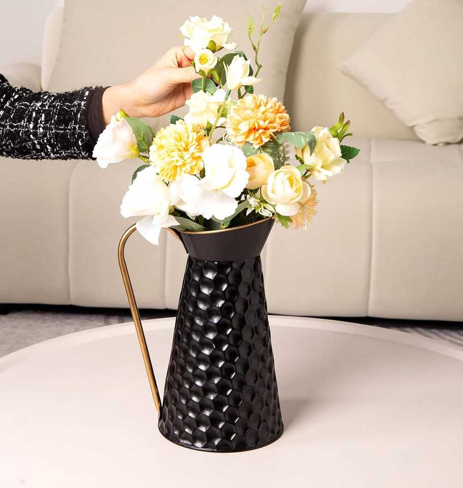 Vase Pichet Moderne Personnalisable en Métal avec Corps Texturé et Poignée pour la Maison, l'Hôtel, les Mariages et les Événements - Accent Décoratif Floral
