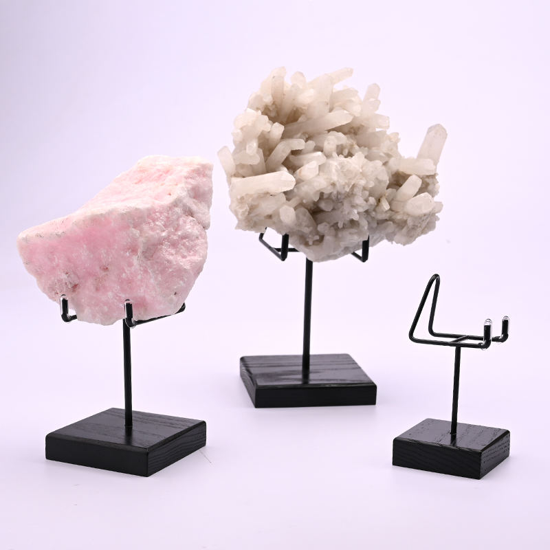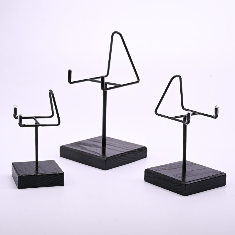 Présentoir carré en bois moderne personnalisable à bas prix support de minéraux en bois noir pliable cadre en acier pour l'affichage de magasin de détail