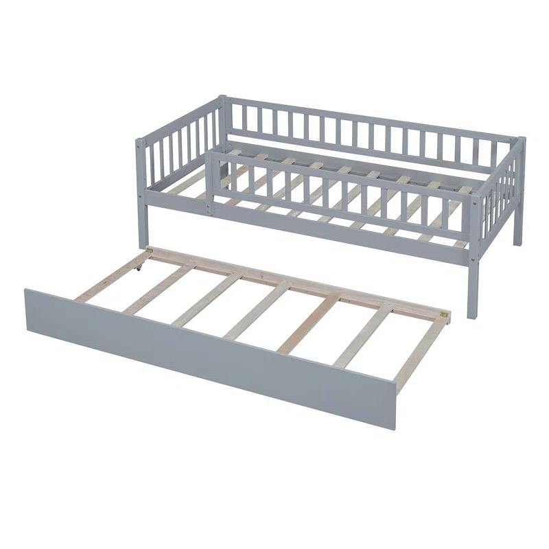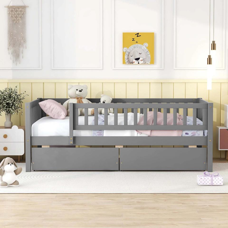Lit bébé moderne personnalisé en bois massif, lit d'appoint pour tout-petit avec barrières de sécurité intégrales, mobilier de maison