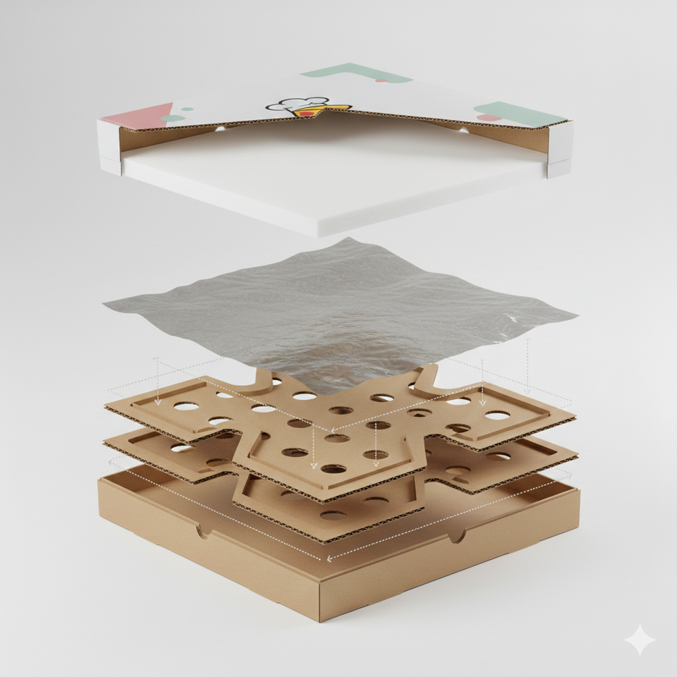 Boîte à pizza cylindrique moderne en papier, conçue pour la livraison, les plats à emporter et la présentation en magasin