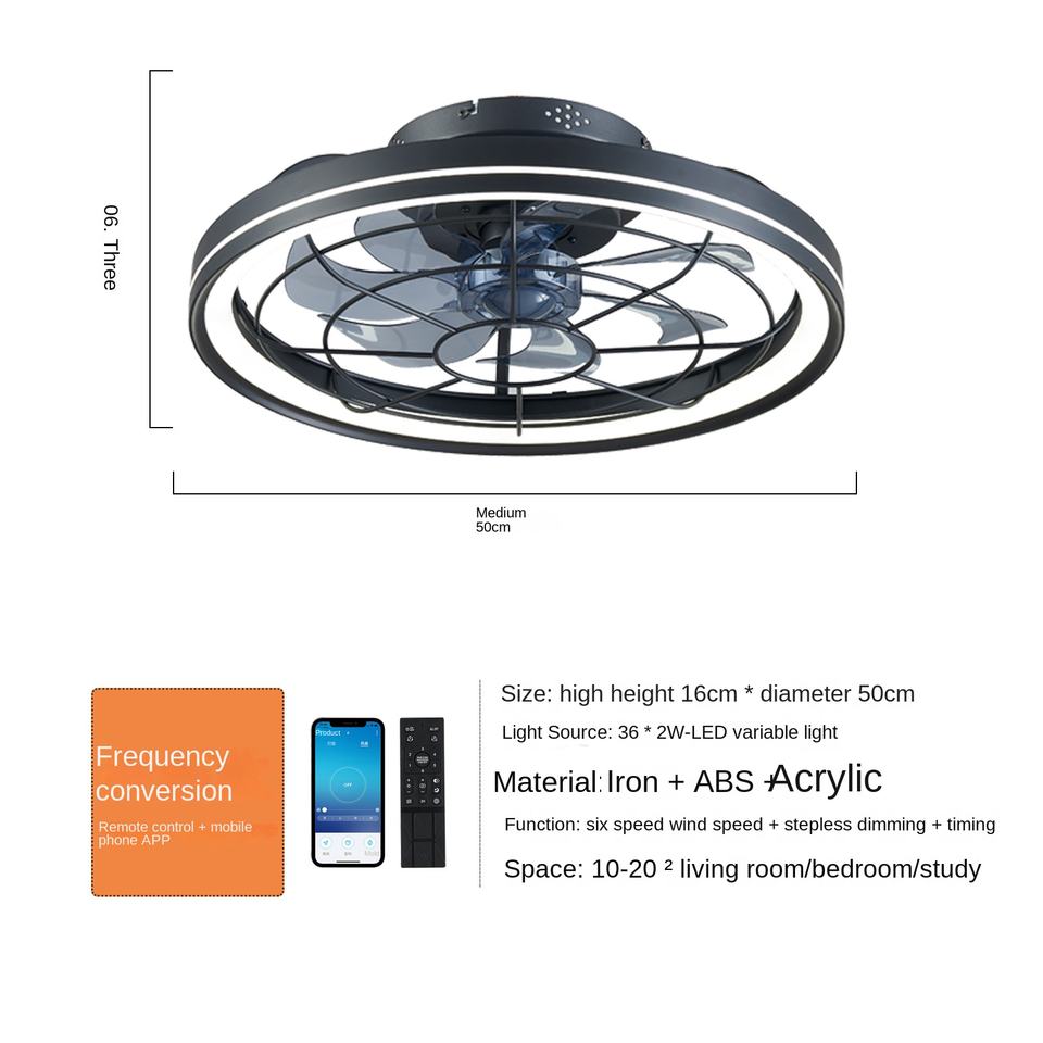 Ventilateur LED à télécommande moderne avec moteur CC, design en cage de fer, 110 V, pour utilisation en salle de bain intérieure