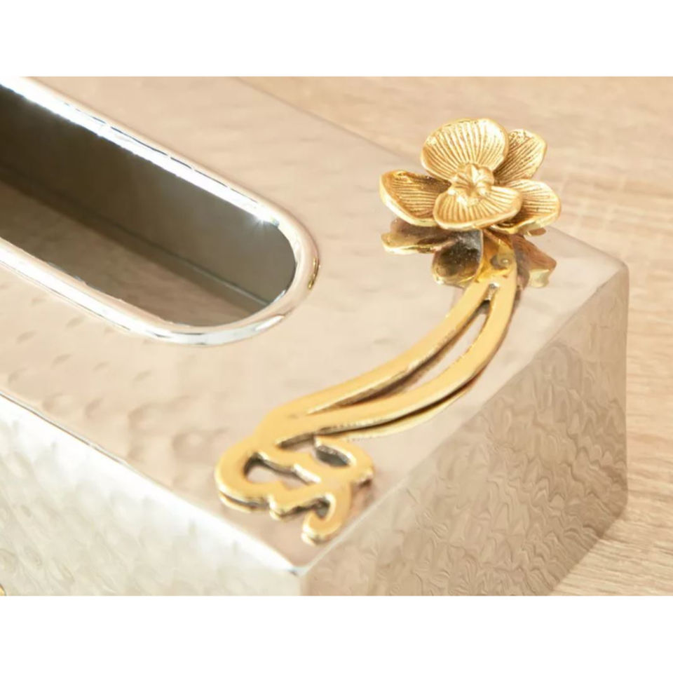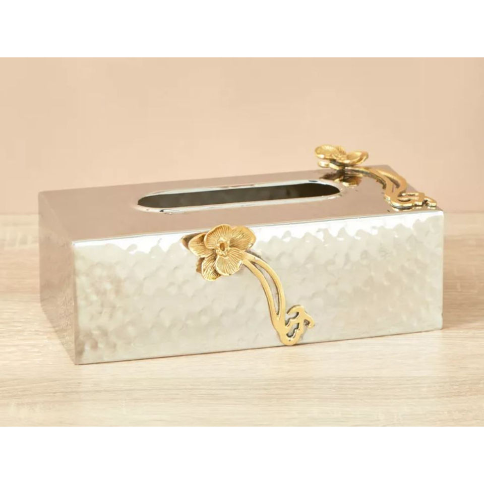 Modern Decor Tissue Box Prime Quality Metal Stainless Steel Floral Accented Tissue Holder Napkin Accessories for Hotel Supplies