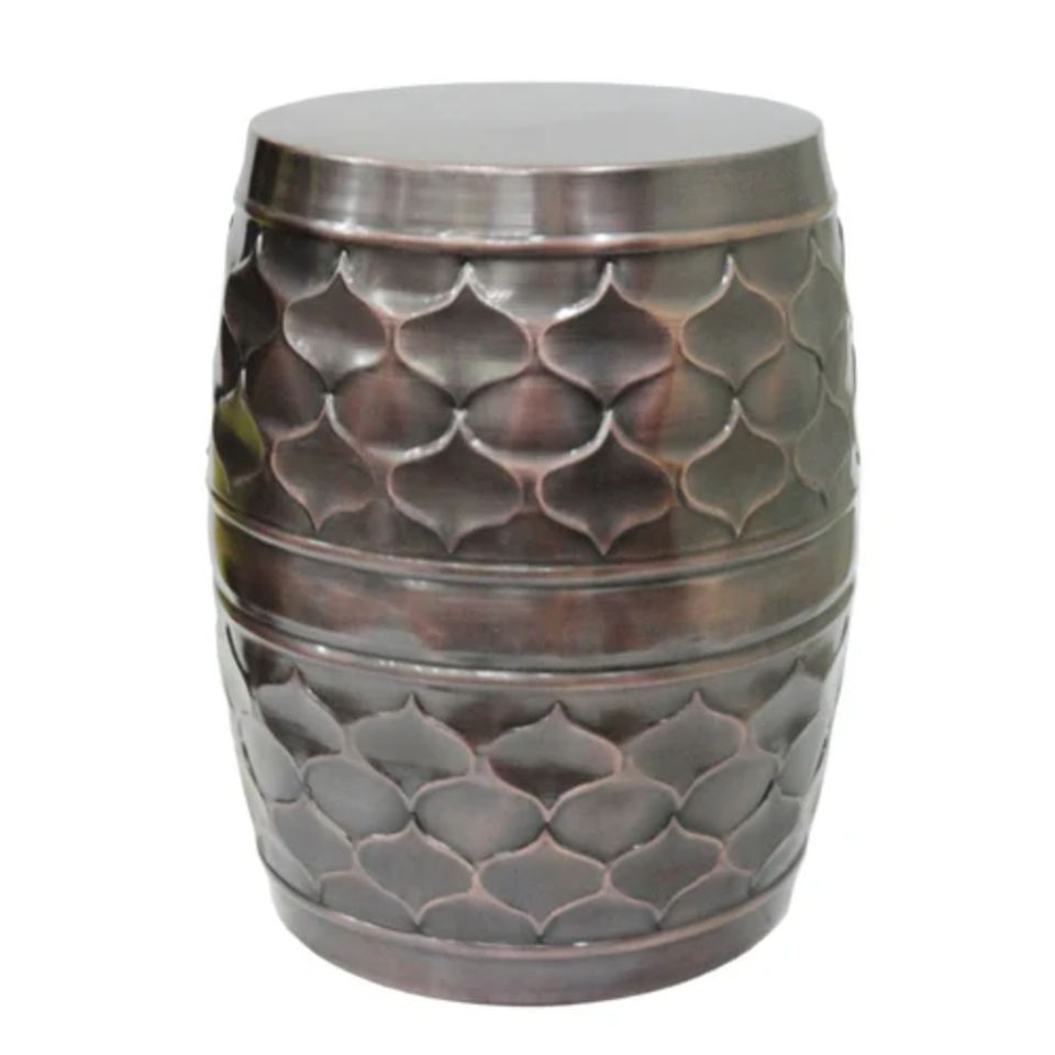 Tabouret Tambour Décoratif Moderne en Métal Gaufré, Finition Cuivre Vieilli, Matériau Fer, Table d'Appoint Ronde, Meuble de Décoration Intérieure en Promotion