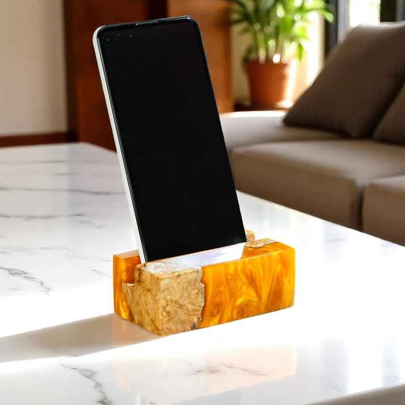 Support de téléphone portable en résine époxy décorative sur le thème de l'amour moderne, fait à la main, durable, pour la table de mariage