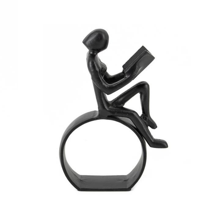 Modern Decorative Metal Seated Reader Figurines Statues Handmade Black Powder Coated Art Decor
