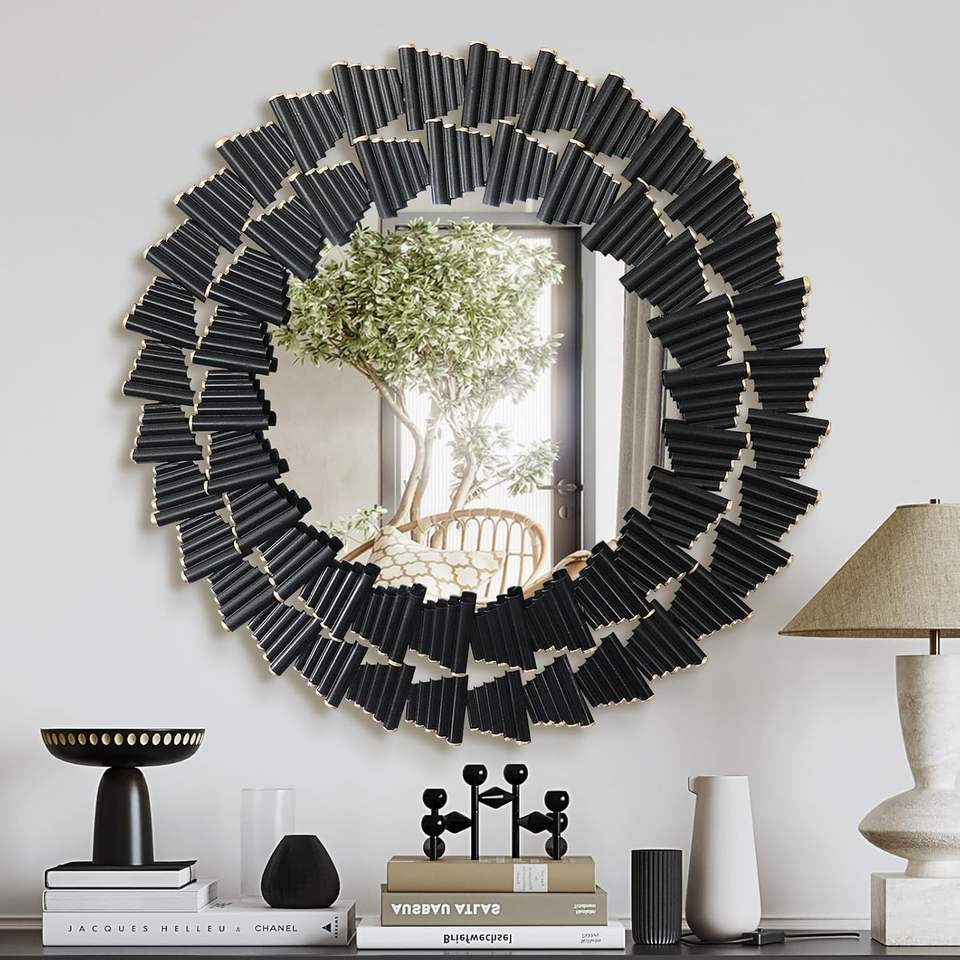Miroir mural rond décoratif moderne avec cadre sculptural