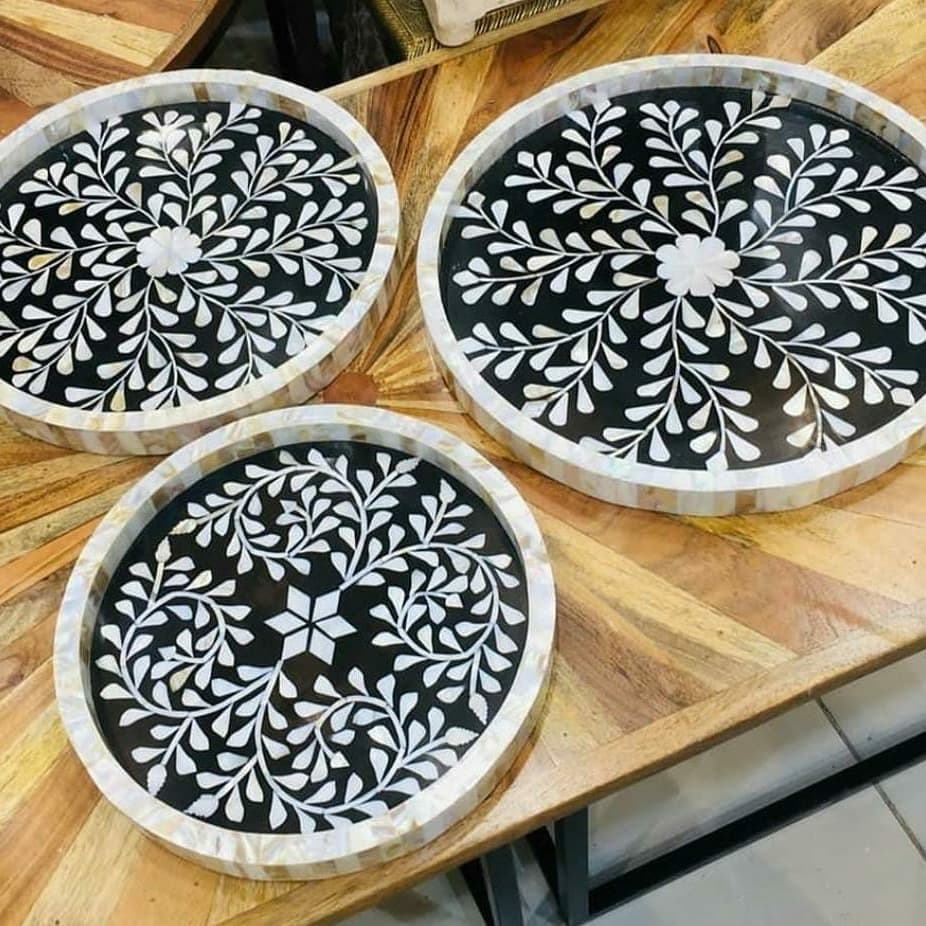 Mère de perle incrusté plateau de serviceNom du produit