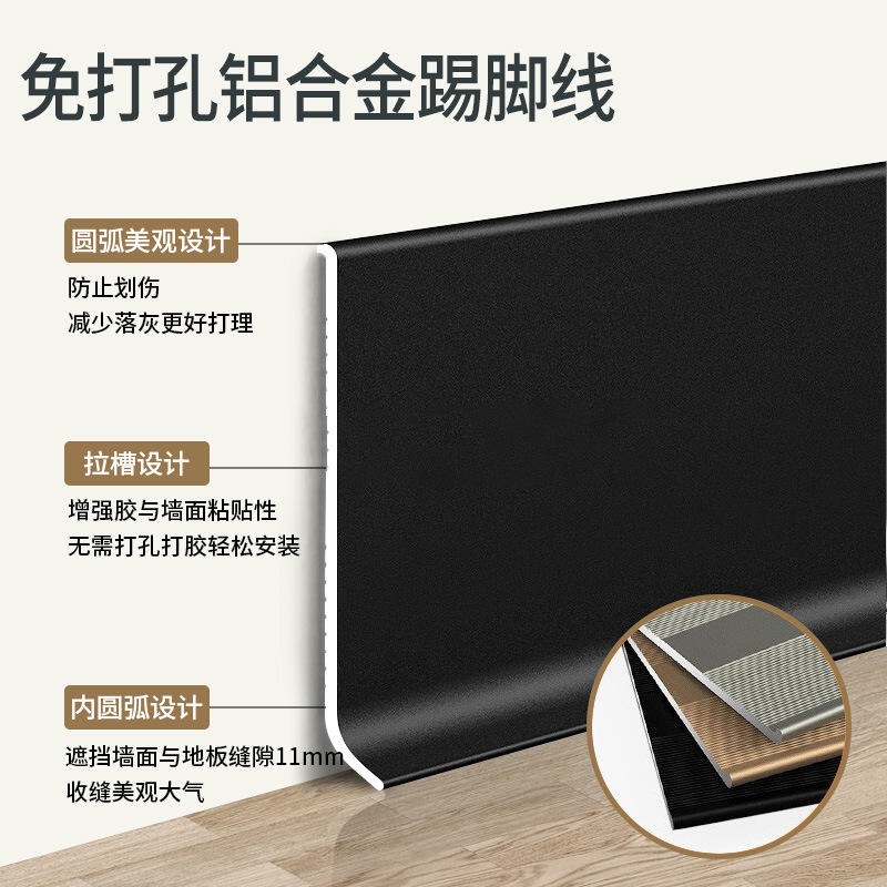 Modern Design 4cm 6cm 8cm Aluminum Alloy Skirting Board Stainless Steel Baseboard Tile Wall Corner Trim for Hotel Floor Usage