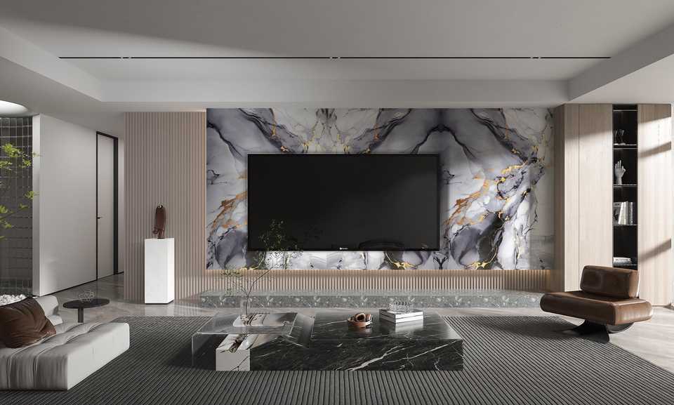 Design moderne 4x8 pieds 32 m² Plaques de marbre PVC flexibles imitation pierre, bleu brume, imperméables, ignifuges, faciles à poser pour la maison et les loisirs