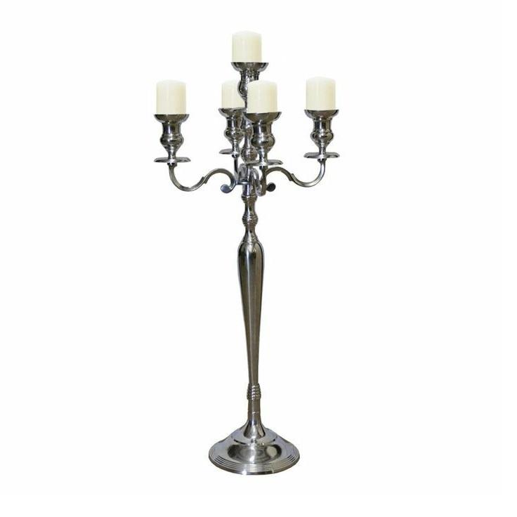 Bougeoir au design moderne à 5 bras en argent brillant pour l'événement de Noël et la décoration de la maison