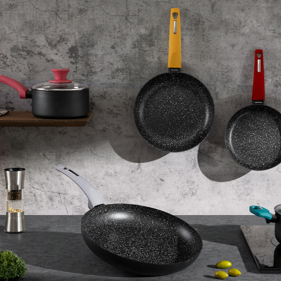 Ensemble de casseroles et poêles de cuisine en aluminium 6 pièces au design moderne, antiadhésif, durable, compatible lave-vaisselle