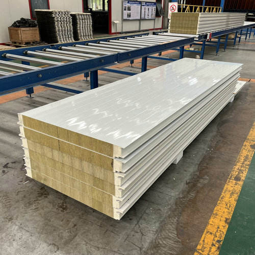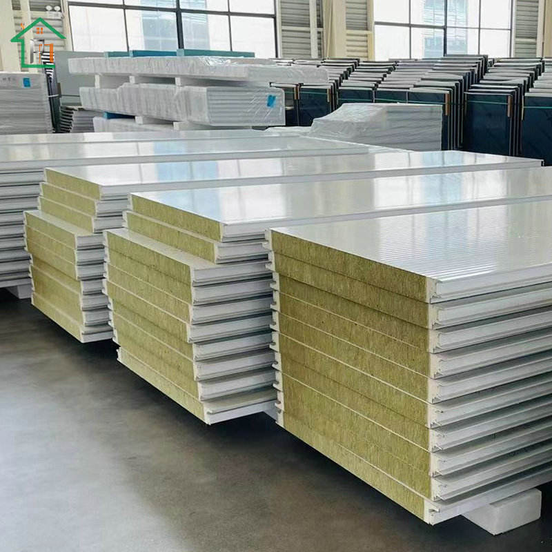 Panneau sandwich en laine de roche de 80mm d'épaisseur au design moderne avec indice de résistance au feu de classe A et panneau sandwich mural en acier de couleur double face