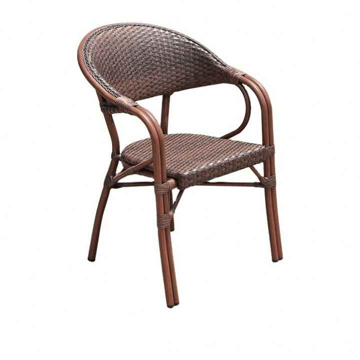 Chaises de salle à manger en tube d'aluminium au design moderne, imitation grain de bois, filet en rotin pour restaurant en extérieur bon marché, pour l'école, l'hôtel et la cuisine.
