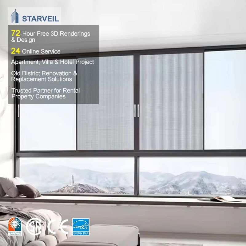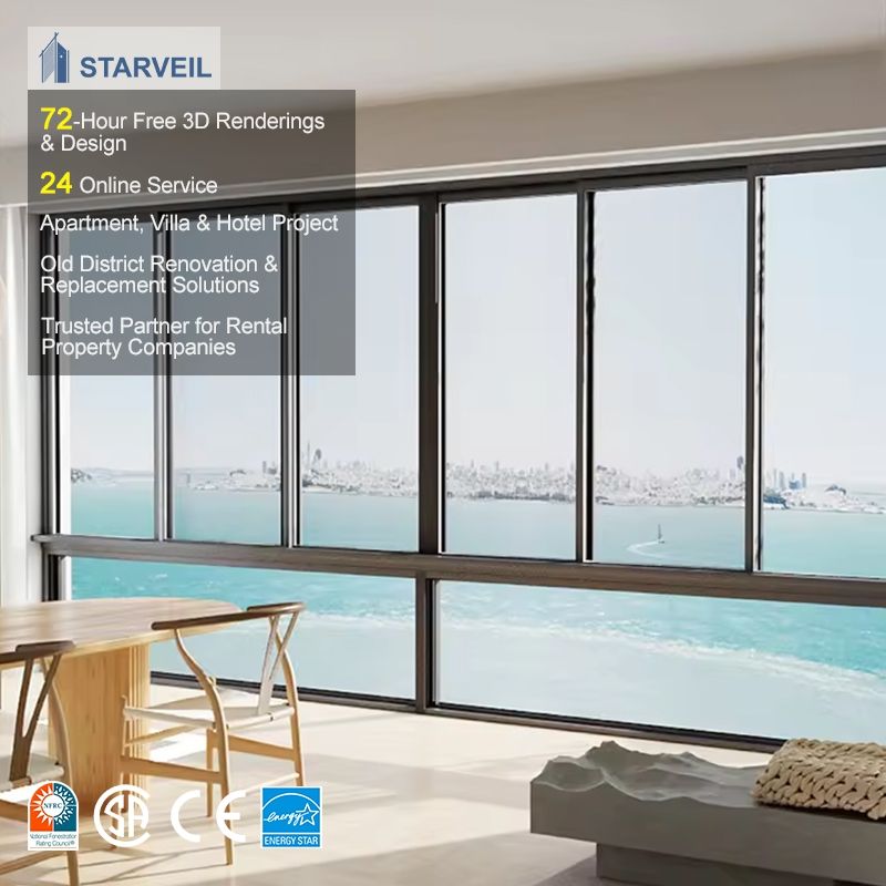 Fenêtres coulissantes horizontales à cadre fin en aluminium, double vitrage insonorisé, design moderne, marque américaine, prix abordable