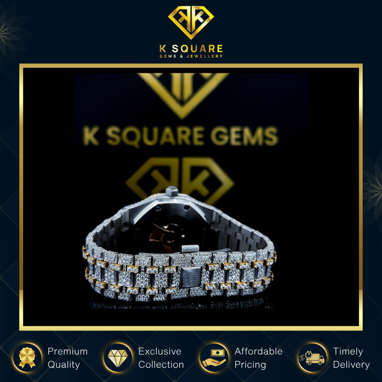 Design moderne analogique en acier inoxydable automatique pour mouvement Quartz Moissanite diamant luxe résistant à l'eau montre unisexe