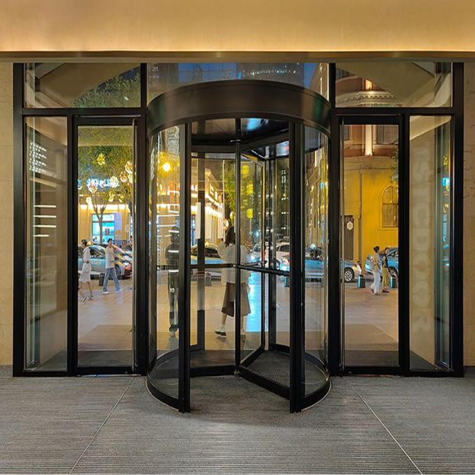 Porte tournante automatique au design moderne pour hôtels : verre trempé imperméable avec surface finie haut de gamme pour entrée de luxe
