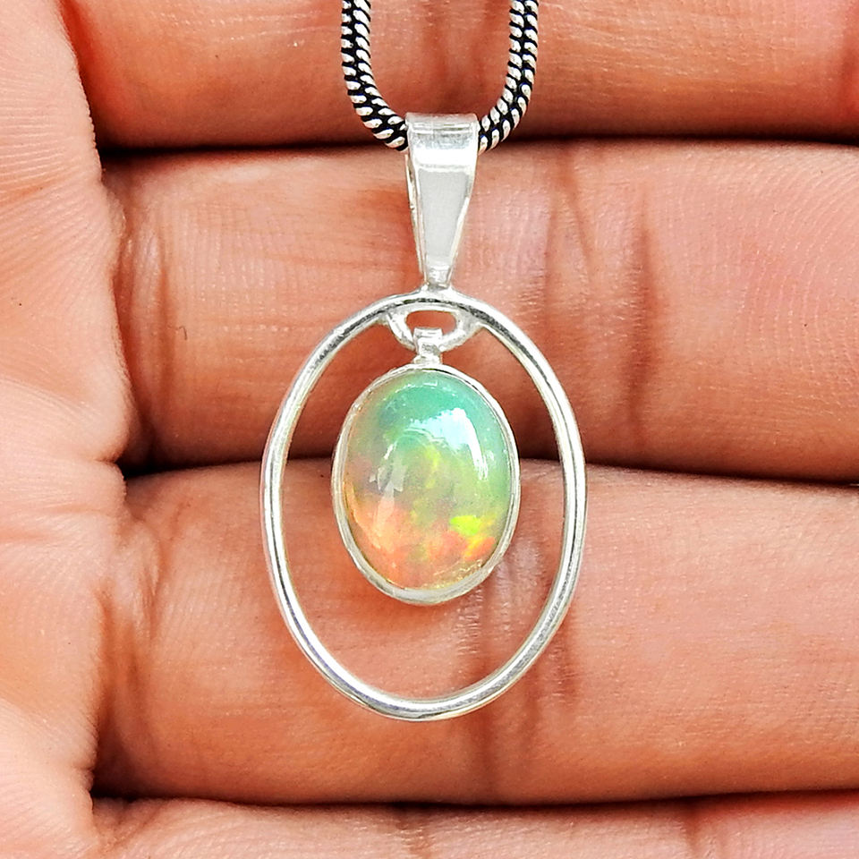Modern Design Best Quality Handmade Jewelry 925 Sterling Silver Natural Opal Gemstone Oval Shape Charm Pendant Bulk Manufacturer