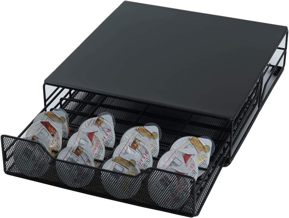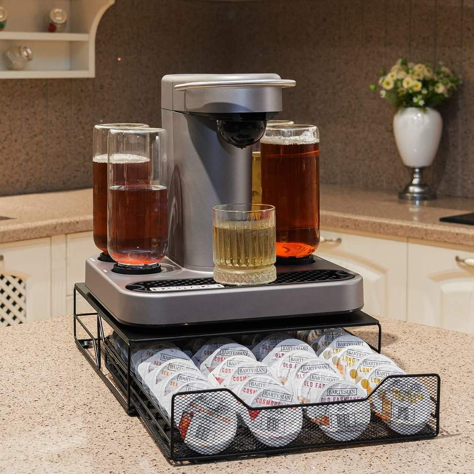 Tiroir de rangement pour capsules de cocktail bartésiennes en métal noir au design moderne avec 36 dosettes de sécurité alimentaire