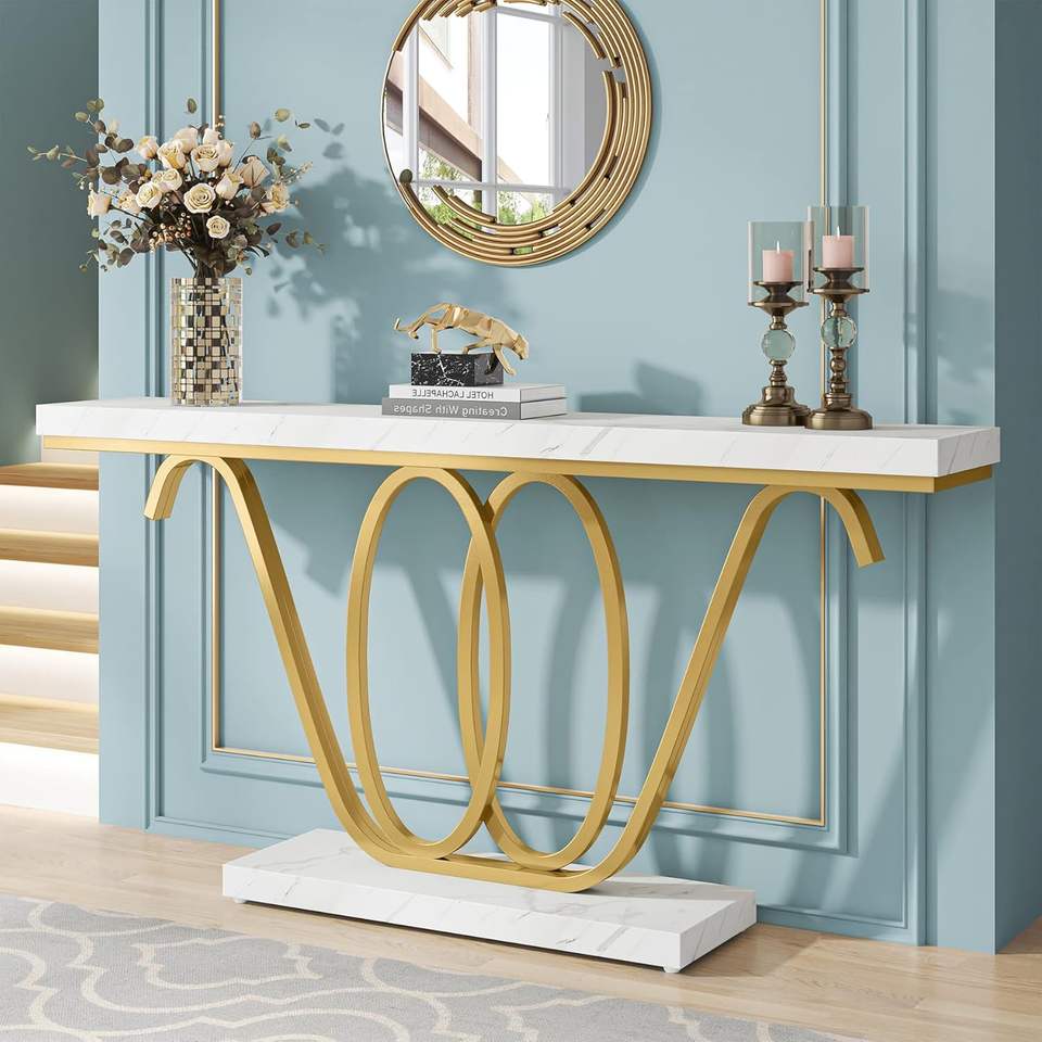 Cadre en métal noir au design moderne avec dessus en marbre blanc Table console d'entrée Table de foyer moderne pour hôtels salon couloir