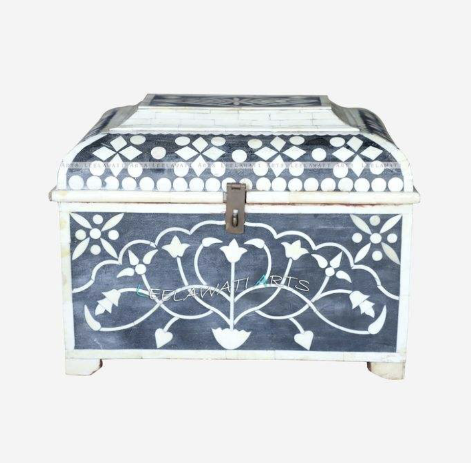 Boîte à bijoux en incrustation d'os de conception moderne, résine indienne artisanale avec un design dernier cri en provenance d'Inde