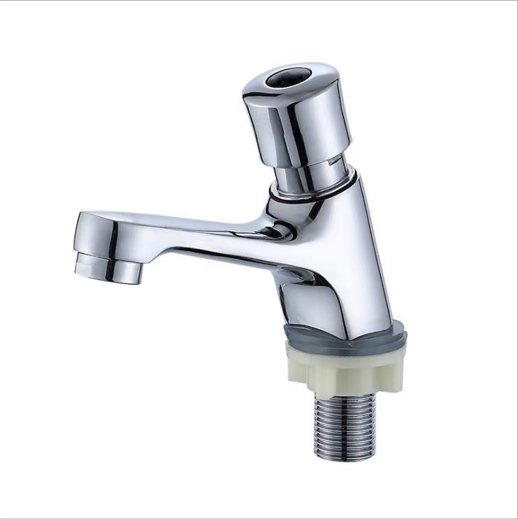 Robinet de lavabo à bouton-poussoir en laiton au design moderne, à fermeture automatique, à temporisation, économiseur d'eau pour les toilettes publiques et les salles de bain