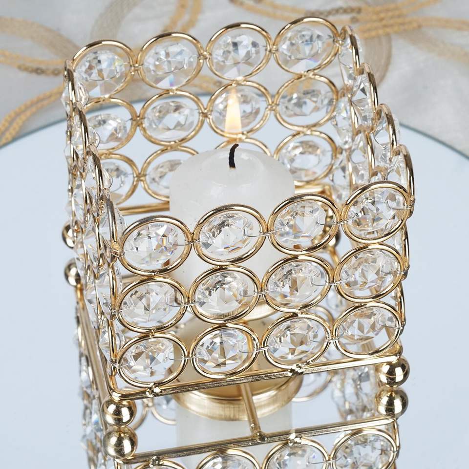 Bougeoir design moderne pour la maison Bougeoir décoratif en cristal doré Bougeoir votif Décoration de table Centre de table en métal aluminium
