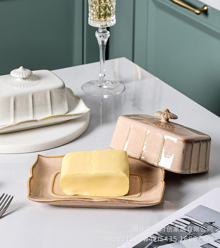 Beurrier en céramique au design moderne avec couvercle pour la cuisine, le stockage des aliments et le récipient pour les gâteaux, les aliments ou les collations.