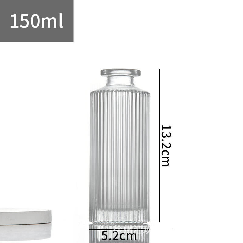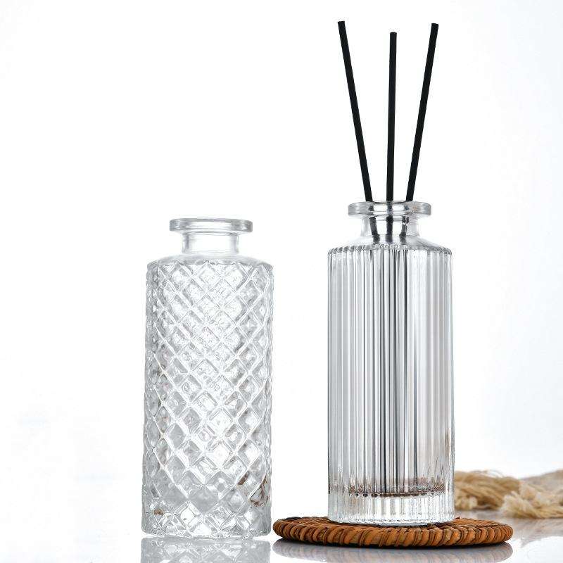 Diffuseur d'huiles essentielles DIY en verre transparent à rayures verticales, design moderne, rechargeable, avec bouchon et bâtonnets