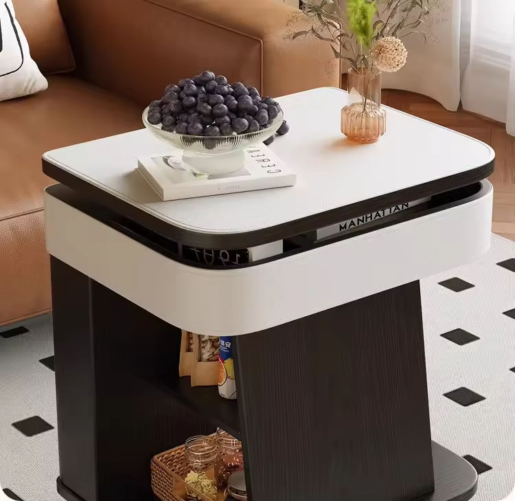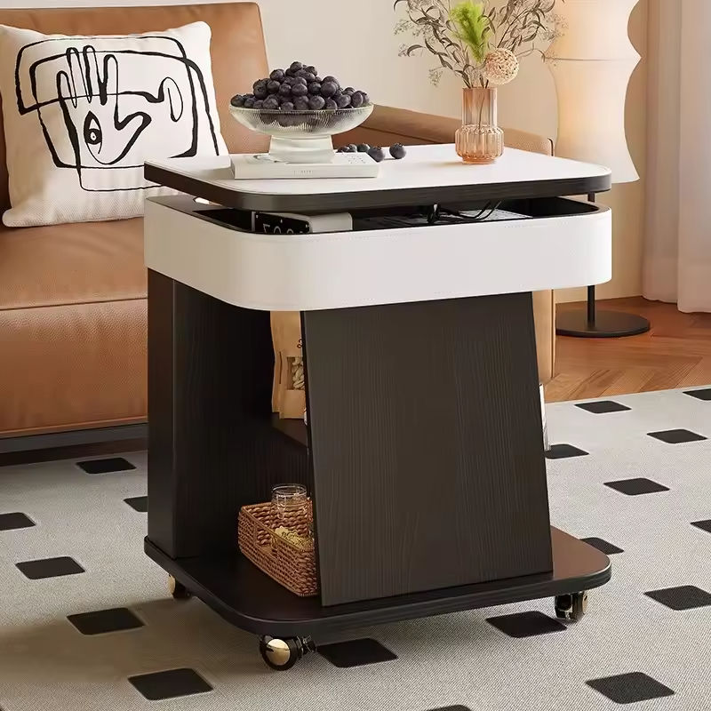 Table basse au design moderne en bois massif, carrée, avec plateau relevable, rangement, mobile avec roulettes, meubles de salon