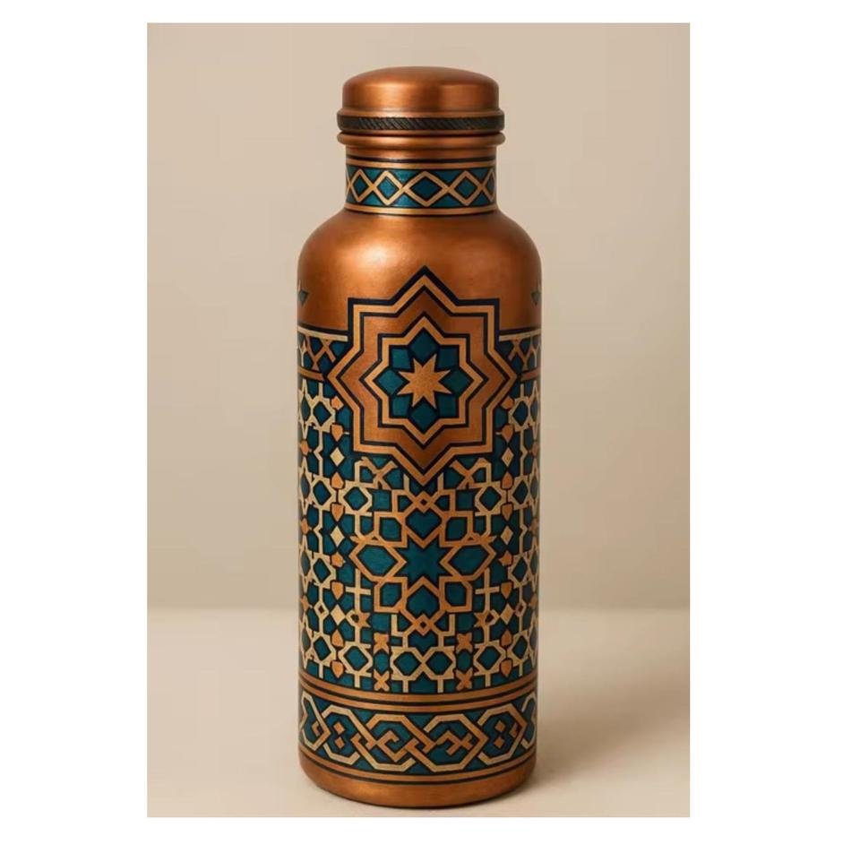 Bouteille d'eau en cuivre au design moderne avec autocollant, finition émaillée, parfaite pour le stockage d'eau à domicile