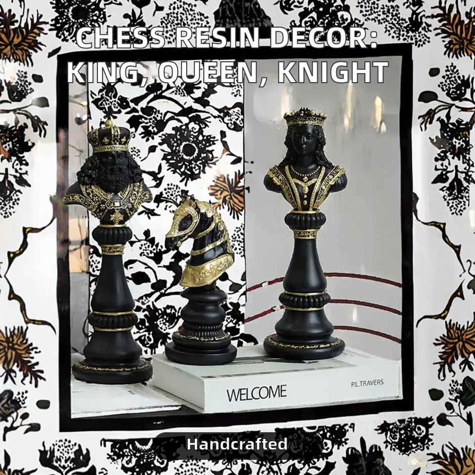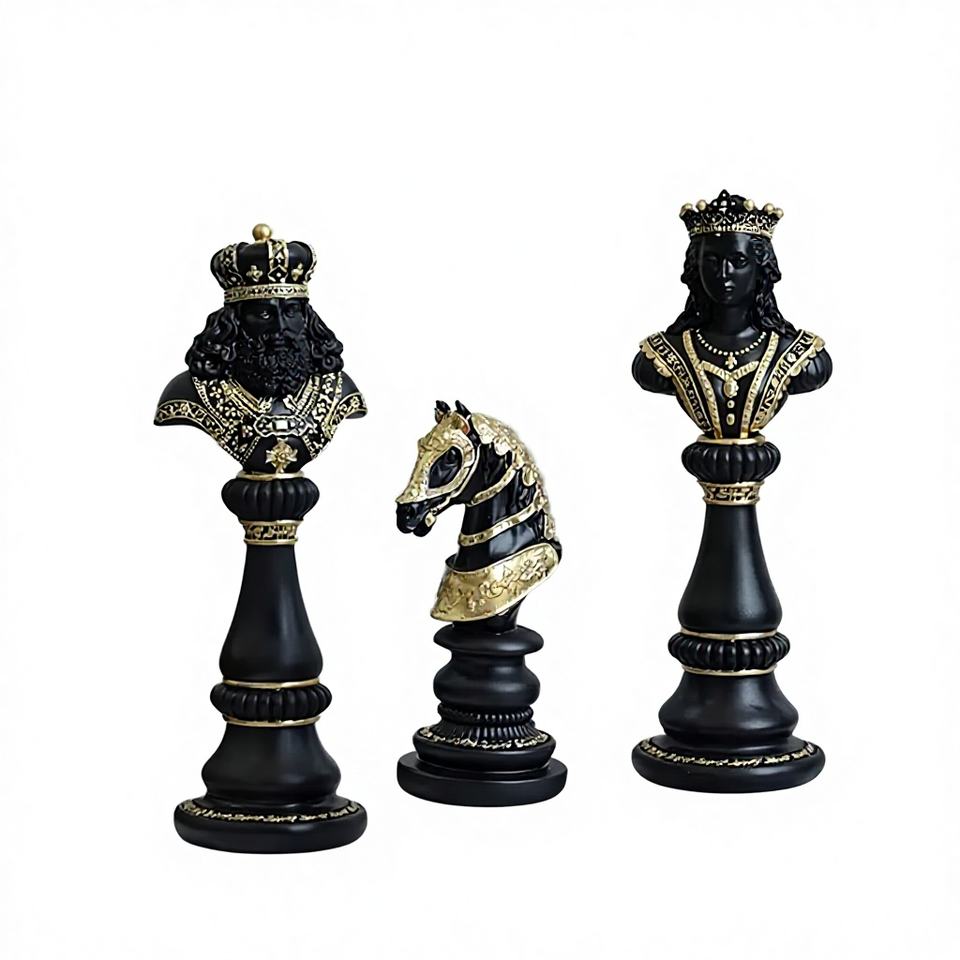 Sculpture artisanale en résine, design moderne, thème échecs transfrontaliers, Roi, Reine, Chevalier, pour décoration intérieure, fenêtre et bureau, cadeau de fêtes
