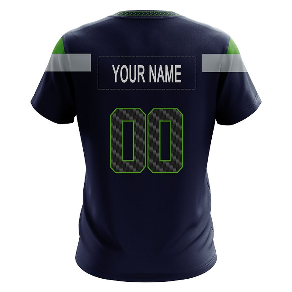 Maillot de football américain en polyester vert Kelly et bleu roi, design moderne, broderie personnalisée, respirant et léger