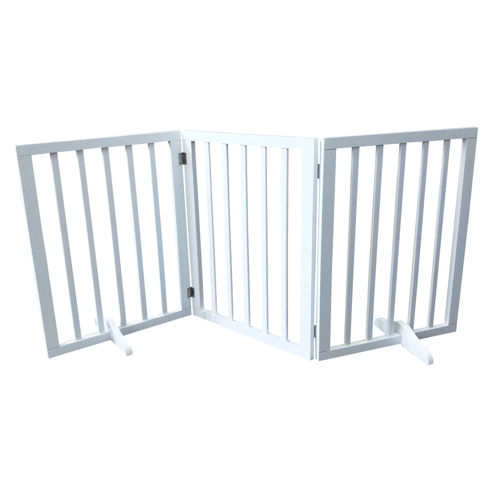 Barrière de sécurité pour animaux de compagnie rétractable moderne, design personnalisé, blanc/gris, 3 panneaux, autonome et pliable, pour chambre à coucher, école, parc