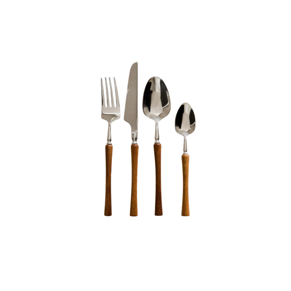 Ensemble de couverts au design moderne en acier inoxydable avec manche en bois artisanal, élégant pour la maison et l'hôtel, à prix abordable