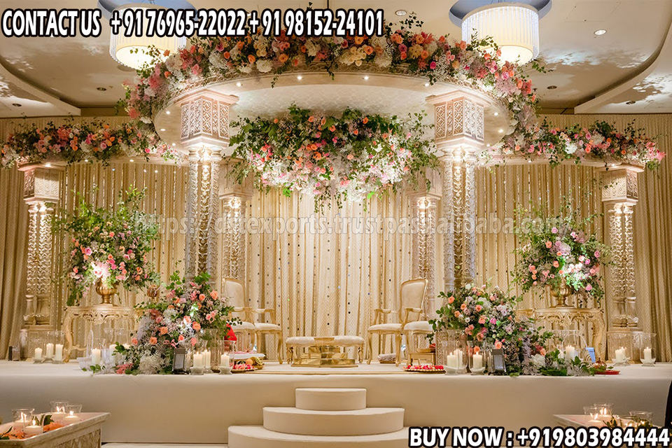 Mandap en métal doré décoratif design moderne Décoration de mariage occidentale Mandap en métal très vendu Mandap en métal de mariage anglais